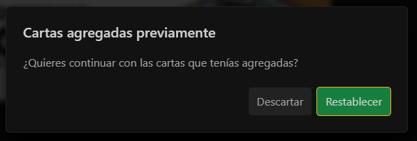 Si en el proceso de loguearnos se nos recarga la página aparecerá esta pantalla. Es importante darle a “Restablecer” para recuperar nuestras cartas. Luego volvemos a darle a “Descargar PDF”.
