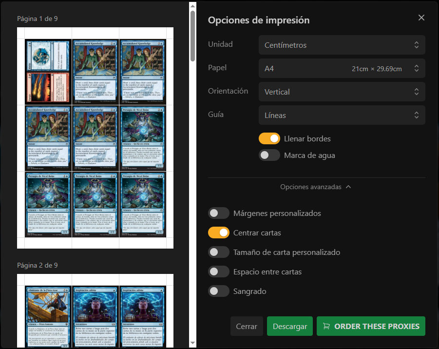 En esta guía vamos a visitar dos páginas web para generar un pdf de proxies con los mejores ajustes para imprimirlos en Percalandia.